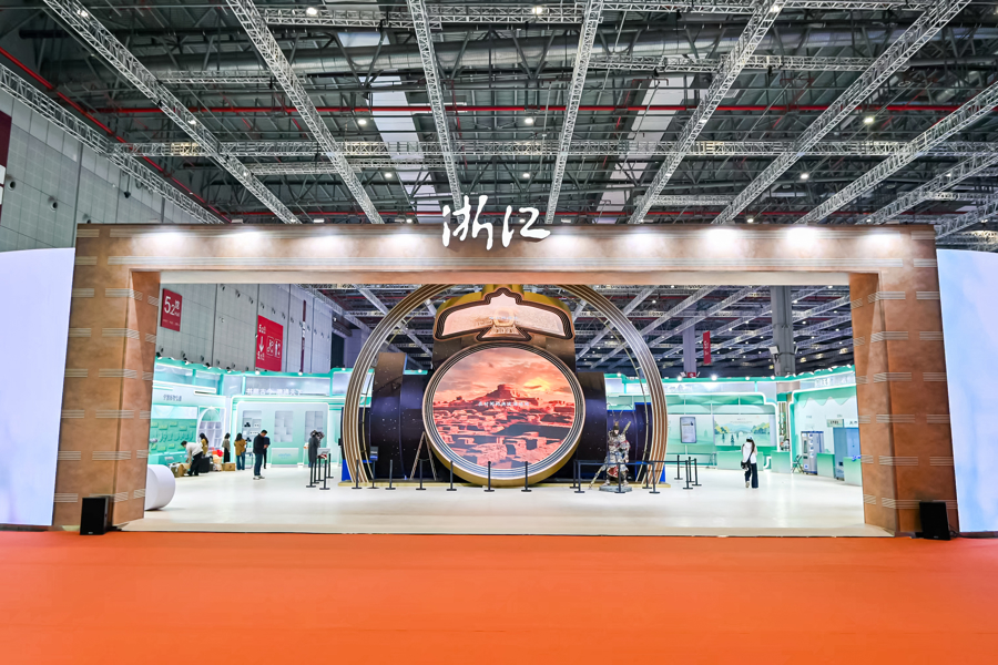 今年,浙江展区以“培育文化新业态,促进文化新消费”为主题天通盈,在约2000平方米的展陈空间内,汇聚132家省内文化企业,打造了一场贯穿五千年文明与数字未来的沉浸式文化体验。